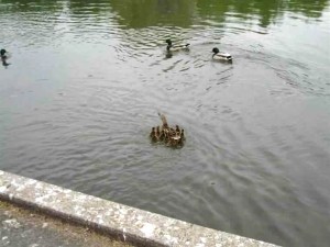 All ten darling ducklings safely made it into the water and paddled up snugly to momma. Michael said the mom swam in circles, looking back toward the beaming bank bookkeeper, and proudly quacking.